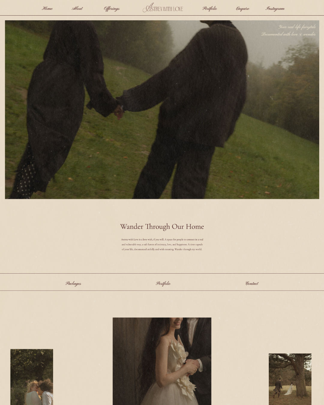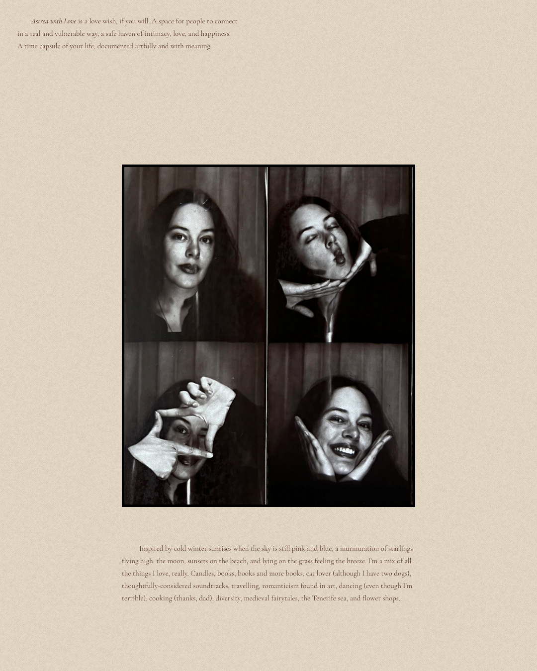 And Astrea with Love is exactly that as well – a love wish. A space for connection in its most real and vulnerable form. A gentle time capsule of intimacy, softness, and memory. You can feel it in everything she creates. Warm, ethereal, and a little dreamlike. And yes, some might even say your very own fairytale. With that being said, the intention for this project was to create a website that could hold all parts of her while showcasing her art in a way that felt elevated, down-to-earth, dreamy, and desirable.