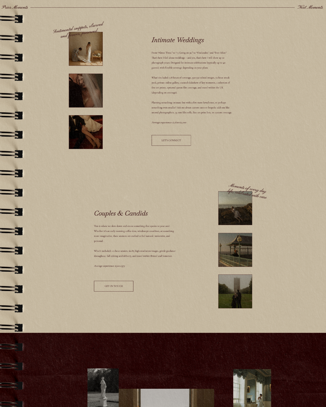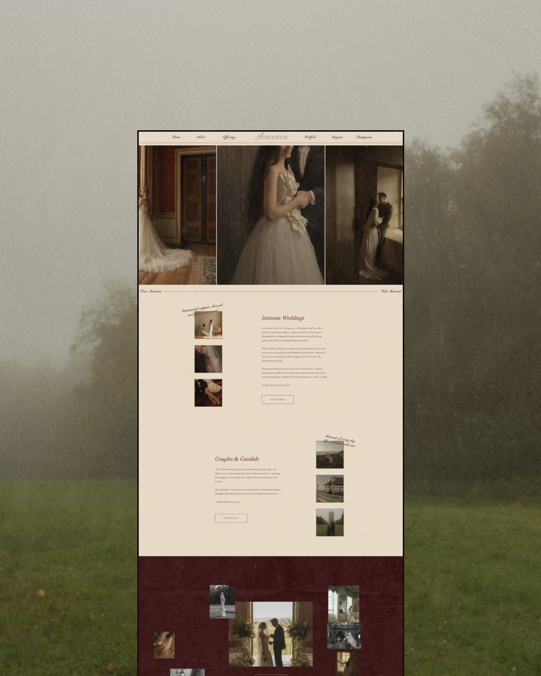 A dreamy, nostalgic, and romantic semi-custom website for UK wedding photographer, Astrea With Love. Using our Olivia Rose template as a foundation, we swapped in her imagery and branding assets, designed new sections, and crafted an elevated website for her business in under 2 weeks. Our collaboration included: copyediting, brand consulting, and template customization (Website Rejuvenation Lite).
